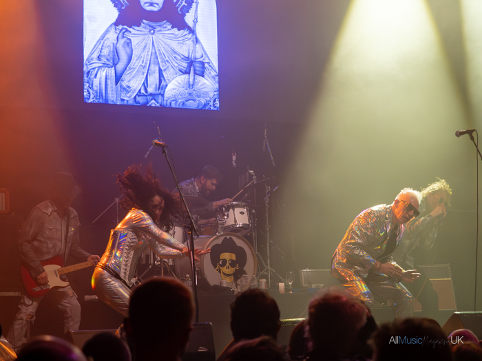 The famous sprung dancefloor of The Ritz was bouncing all night, with the crowd singing along, hugging each other, and smiling all around. It was such a feel-good evening—the set flew by even though it was jam-packed. There were serious moments and a few political nods, but nothing that dampened the mood. Near the end of the set, the support band joined Alabama 3 on stage for a chaotic but extremely fun couple of songs that went down very well.