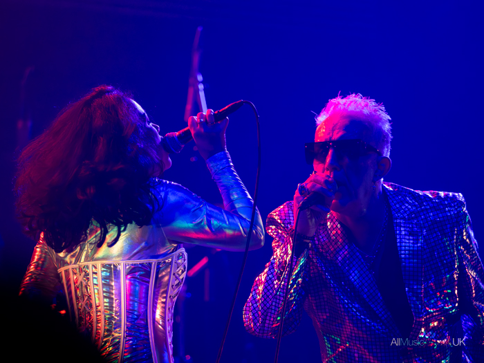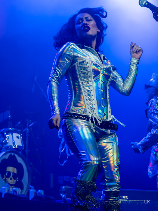 Alabama 3 burst on stage ready for a party. Larry Love and Devlin, both dressed head-to-toe in sparkles, delivered quality vocals, engaging with the crowd and belting out the classics.