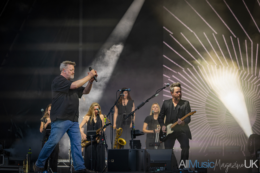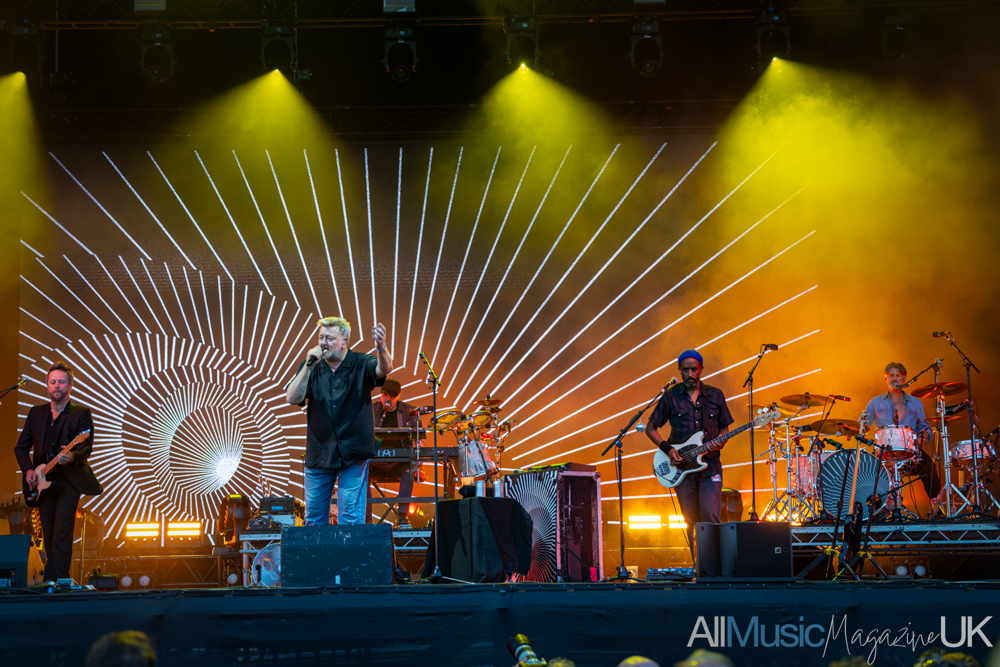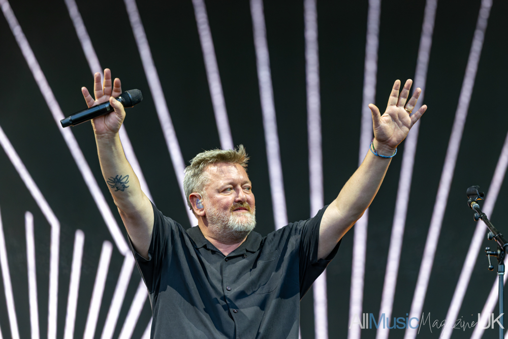 Between songs, Guy Garvey shares anecdotes and intros to the next track. Introducing The Seldom Seen Kid from their 2021 album Flying Dream 1, Garvey explains it was written during lockdown — a time when the band had to write music individually and send pieces to one another. In this case, a beautiful instrumental landed in his inbox, and he wrote lyrics inspired by a close friend. It was clearly very emotional for him to sing.