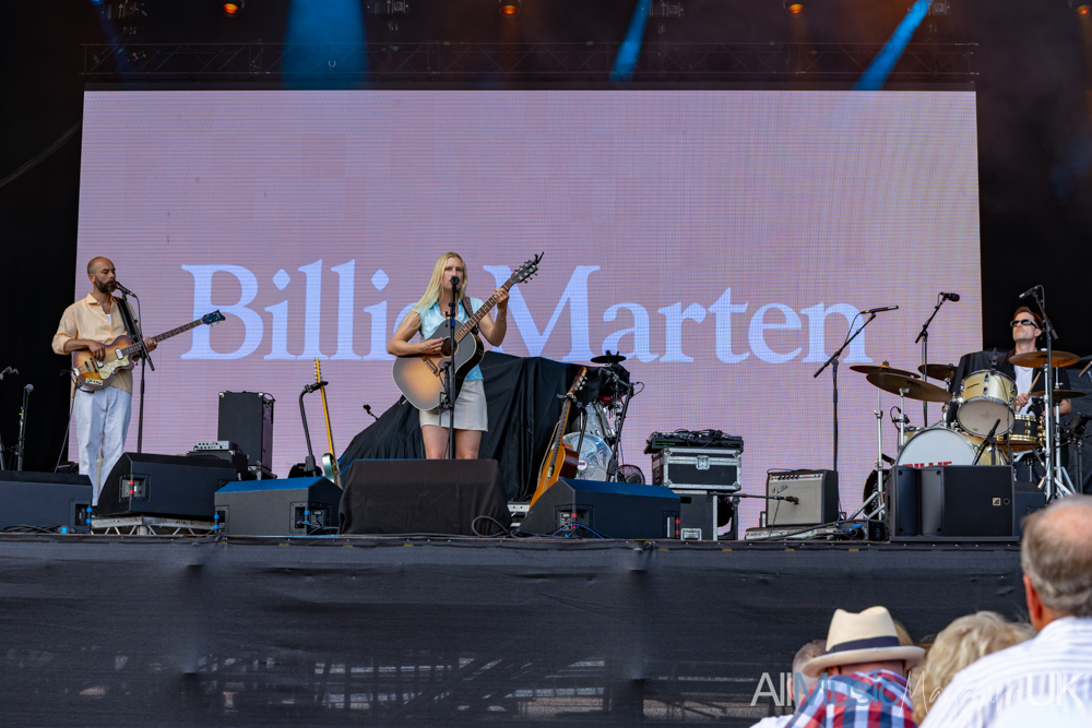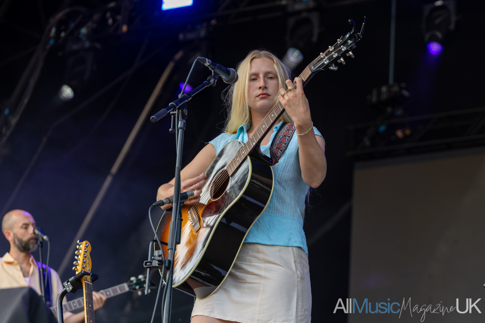 Billie Marten, a young singer-songwriter, takes to the stage at 6:45 p.m. Commanding such a presence on stage is impressive. Billie’s style is a mix of several genres — folk, acoustic — while still leaning towards indie. Her set is unfortunately a short one, but it goes down well. It includes several songs from her upcoming album due for release next month, and even features a guest spot from a well-known singer appearing later tonight.
