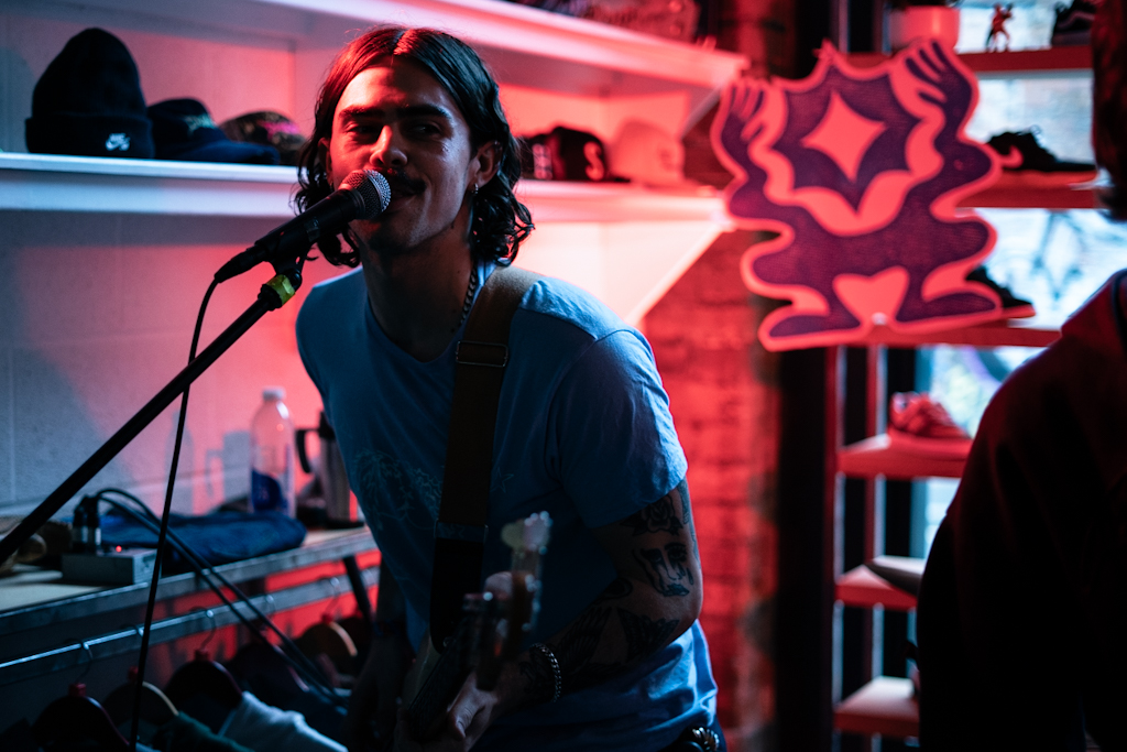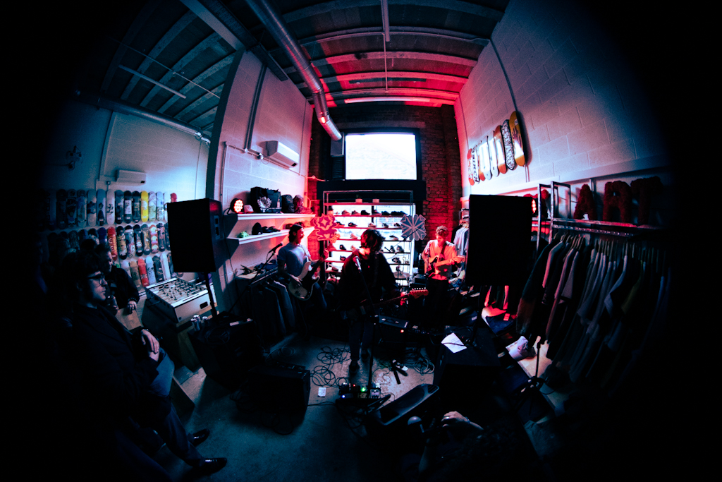 I decided to take a little detour as I heard Little Grandad were playing at Lost Art, an iconic skate shop/venue, a few roads down. The place was rammed, with a queue already forming outside as I set foot in the shop. In the corner was quite literally the smallest stage setup I’d ever seen with amps, a drum kit, monitors the lot crammed in together, yet it worked perfectly and the mix was stunning.