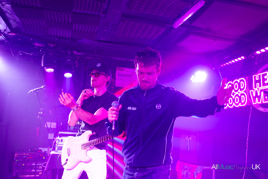 GHGW are a London-based alternative duo comprising vocalist/producer Bruce Breakey and guitarist/producer Simon Kuzmickas. The two of them bring a smouldering energy to the room as they open with “Guiness” an old track, released in 2021. It’s a slow burner but includes every ingredient that has made GHGW so likable. Witty, observational lyrics with melodic hooks. There’s more than a hint of punk and hip-hop as screeching guitars play over electronica beats.