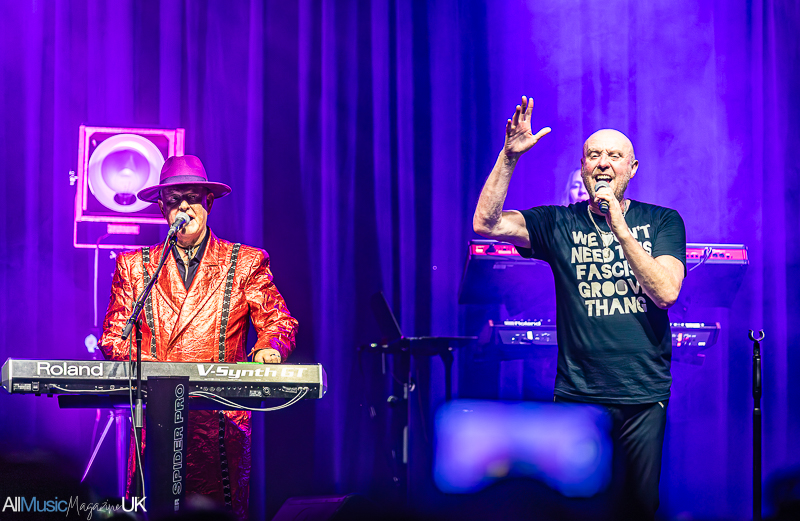 Intro-ing the next song, the band’s debut single, We Don’t Need This Fascist Groove Thang, and reminiscing about moving back to Sheffield after The Human League split, Glenn said they wrote the track in five days. ‘40 years later, who’d have known it would be more relevant now than it was then’, he said. There was a reference to the current American president but for the sake of our readership we’ll have to keep it clean (although we were all in agreement with Glenn’s views).
