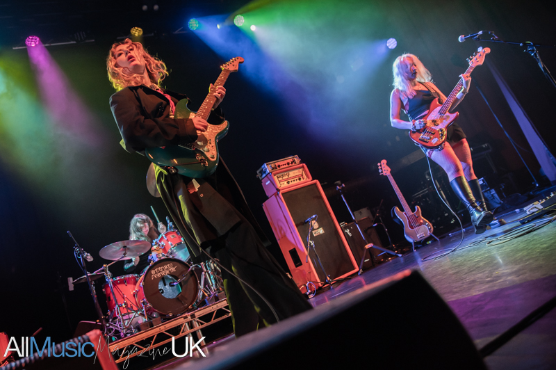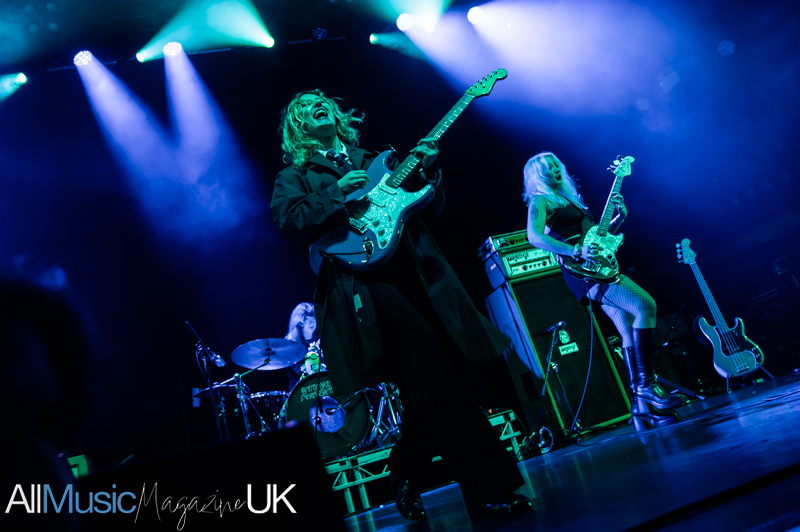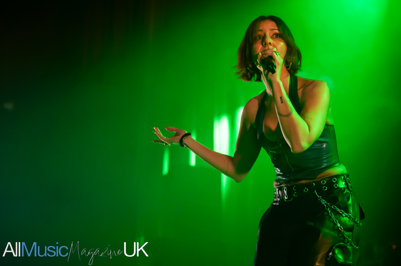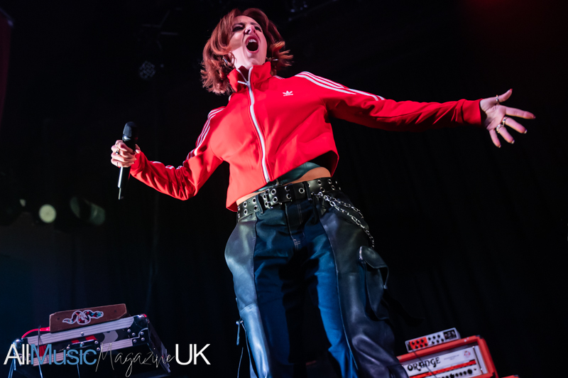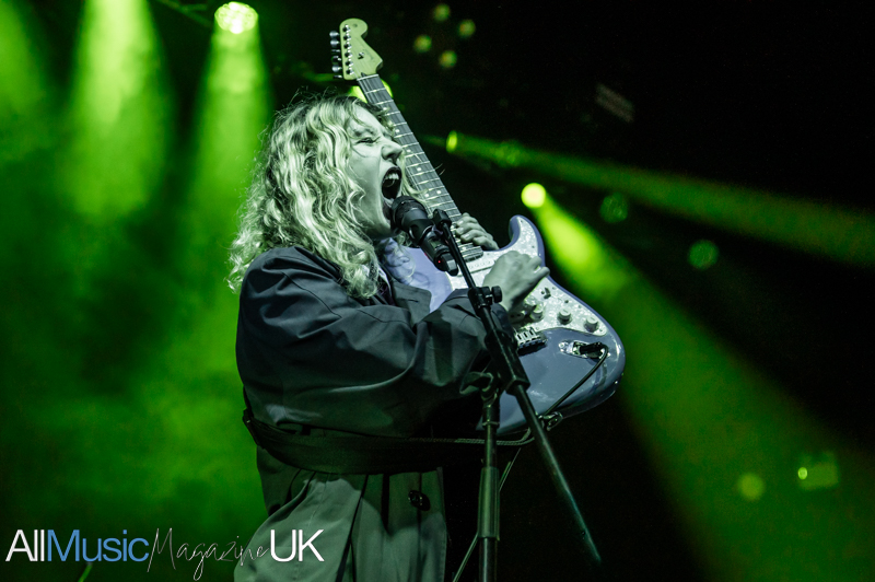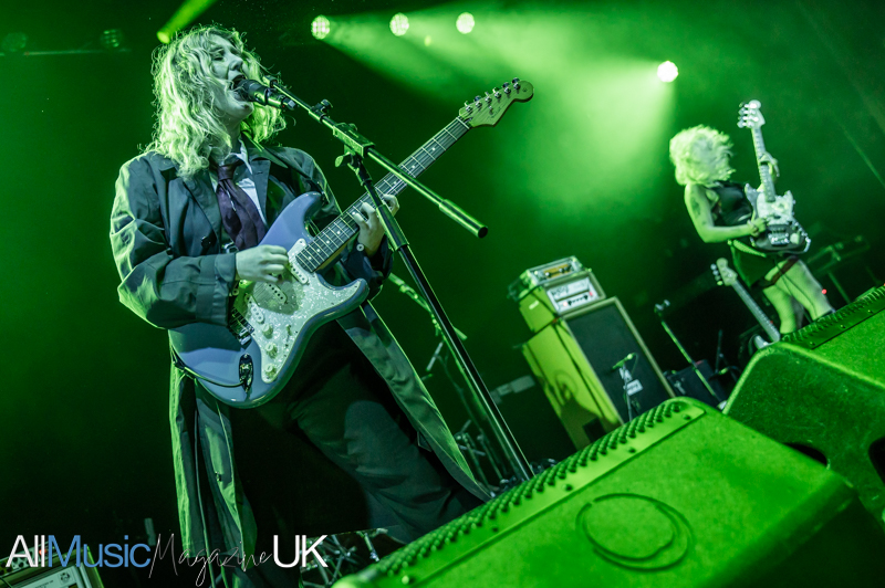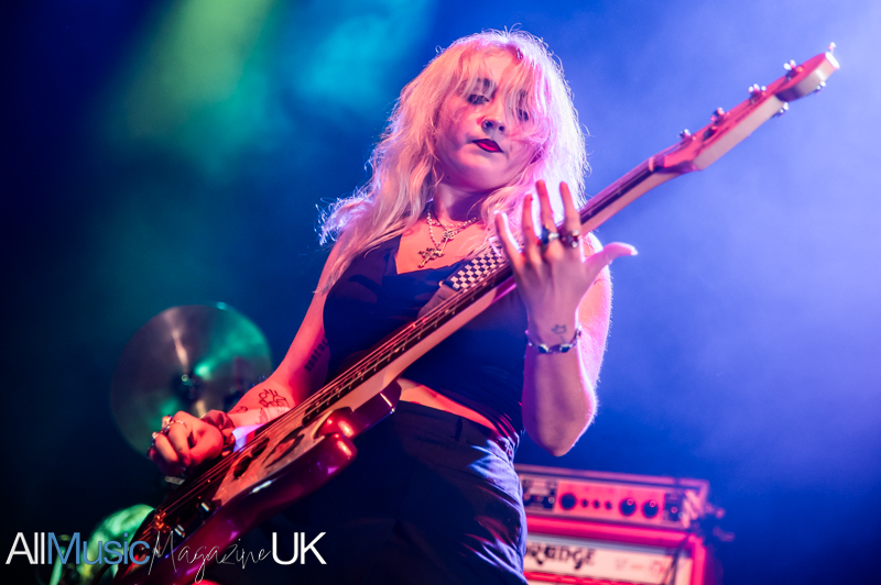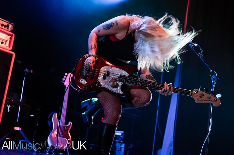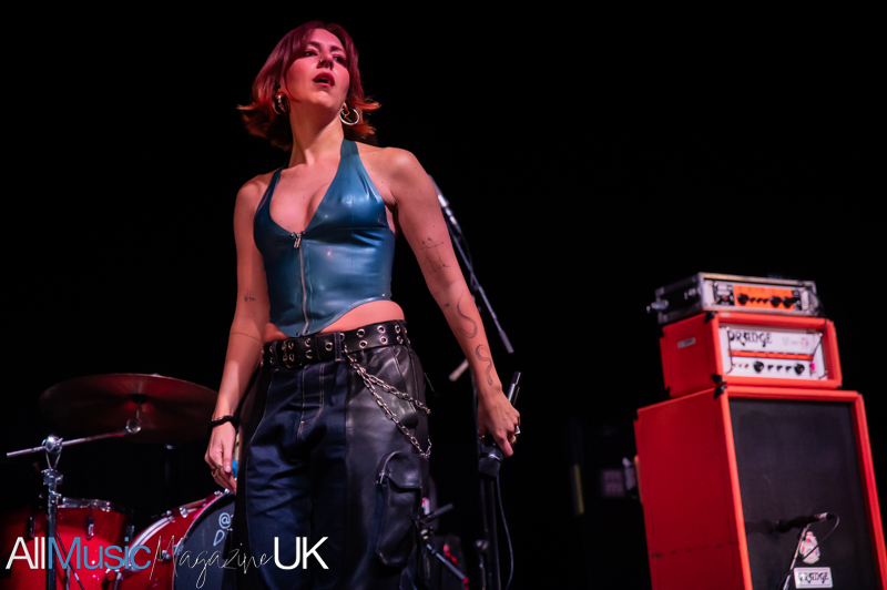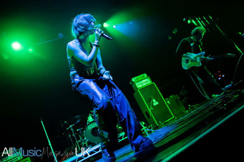 Their industrial pop-punk pulse hits hard, each beat vibrating through the crowd as Sabrina stalks the stage with fierce, restless energy. Jon’s riffs slice cleanly through the mix, creating a wiry tension that never lets up. The duo command attention, turning support-slot minutes into a tightly coiled spectacle. The audience, here for Lambrini Girls, quickly surrenders to the hooks and glitchy swagger. By the final track, the room feels fully theirs, the set landing like a shockwave, brief, breathless, and brilliant.