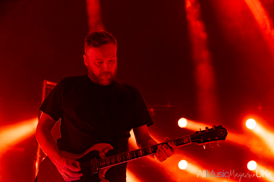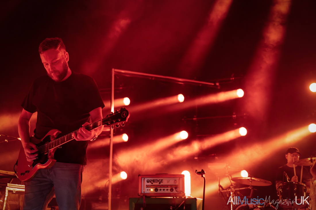 At nine o’clock, Mogwai took to the stage with “God Gets You Back”. It was a strong opener — not only for the evening but also as a showcase for the album released last year. The Carpenter-esque influence that has developed in their sound has been widely discussed, particularly in relation to their more recent synth-led tracks. Like John Carpenter, Mogwai have composed several TV and film soundtracks, and that cinematic quality is unmistakable. A lone microphone stand hinted that there would be a handful of vocal tracks — a relatively recent addition to the predominantly instrumental, guitar-driven set.