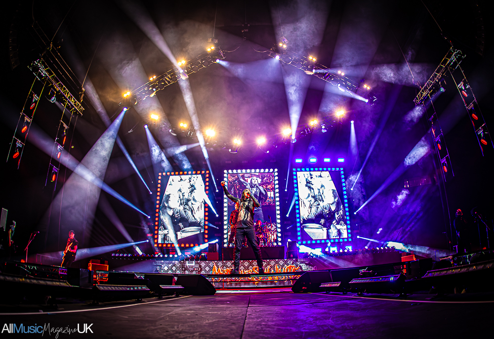 Chris owned the stage like a predator. His vocals cut between snarling aggression and soaring melody, and every time he leaned into a chorus, the entire arena sang with him. Behind him, the guitars, synths, and pounding drums merged into a wall of sound so tight it felt almost physical. Every breakdown slammed like a hammer, every beat pushed the crowd into frenzy. I was soaked in sweat within the first few songs.