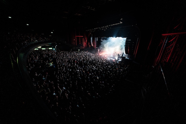 Inside, the Forum was packed wall to wall—heat rising, floors sticky with expectation. The support slot belonged to The Boy Shadow, and they leaned into the strangeness rather than trying to soften it. Masked figures, atmospheric dread, electronic textures colliding with heaviness in ways that refused tidy genre labels. It felt like being dropped into someone else’s fever dream halfway through the plot, disorienting in the best way. They didn’t hype; they immersed. A daring opener, and the crowd respected it, even when they didn’t quite understand it. That’s trust, right there.
