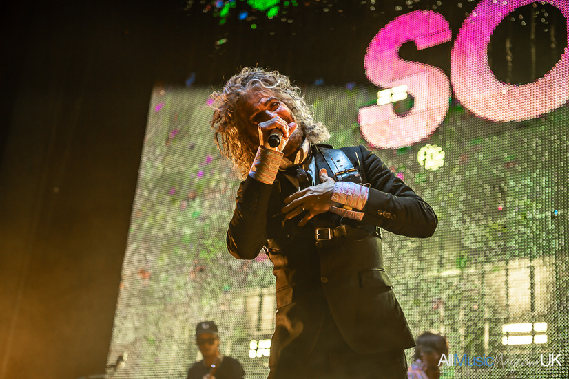 Tonight, The Flaming Lips were electrifying, spectacular, and unforgettable. There were confetti cannons, giant bouncing balls, a singer with huge eyeballs and mouth, inflatables—and a big “F*** yeah, Manchester!” to close it all.
