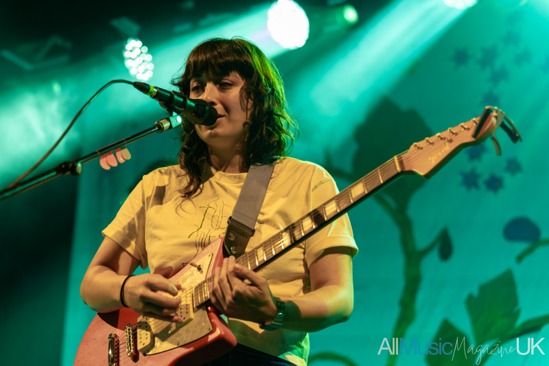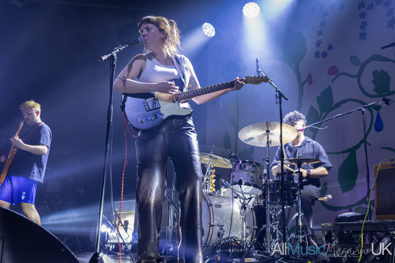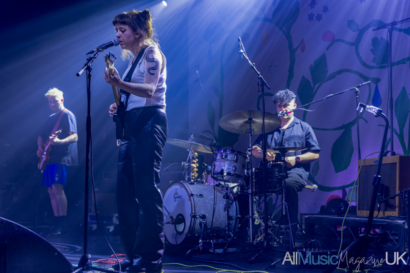 Opening tonight are fellow Kiwis Dateline, from Wellington. (I remember being asked in school what Wellington was famous for — I suggested “boots.” The teacher wasn’t amused.) Dateline have close links to The Beths: frontwoman Katie Everingham toured with them as a drummer in 2018. Their style is indie rock, and Katie has said the two bands complement each other well — something I’d agree with. She’s joined by her brother-in-law Reuben McDonald on guitar, Hikurangi Schaverien-Kaa on drums and Phoebe Johnson on bass. Their short set really stepped up mid-way through, winning over plenty of new fans. Despite not feeling 100%, Katie promised they’d be at the merch desk for “a little chit-chat,” and judging by the crowd’s reaction, they were well received.