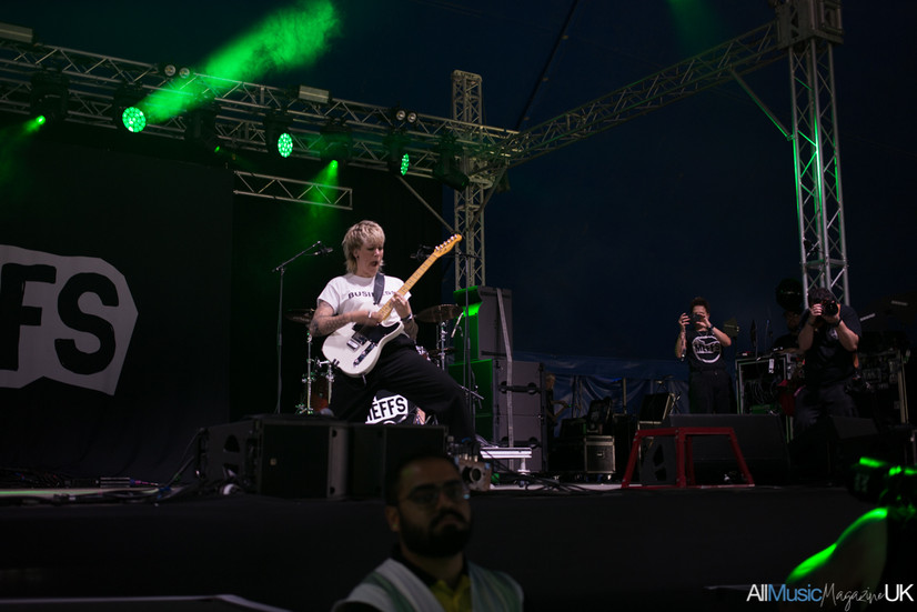 The Meffs reappear moments later and launch straight into "Broken Britain, Broken Brains." Lily’s custom Gordon Smith Classic-T sounds absolutely huge—power chords roar out of the speakers while Lewis’s drums thunder with precision and fury. “Around and around we go,” Lily shouts, her vocals dripping with urgency. Next up is "Deathwish"—a perfect slice of punk: three minutes of rage, melody, and infectious defiance.