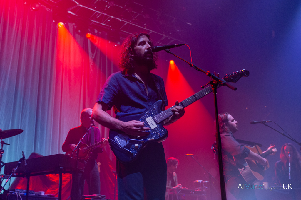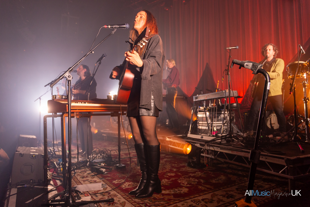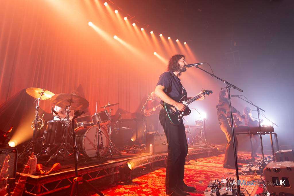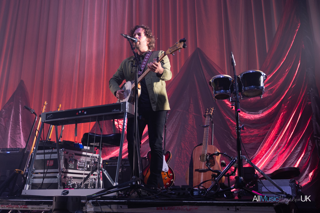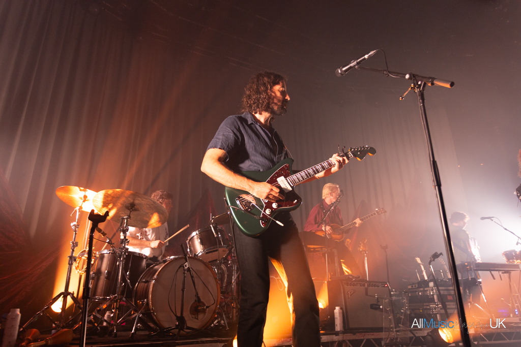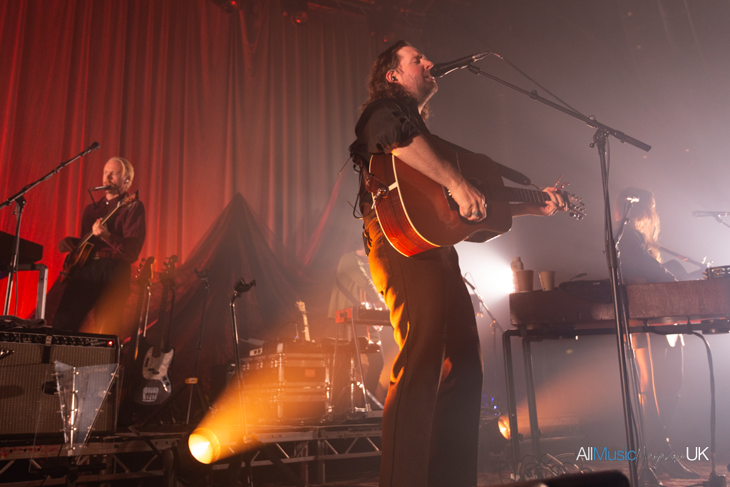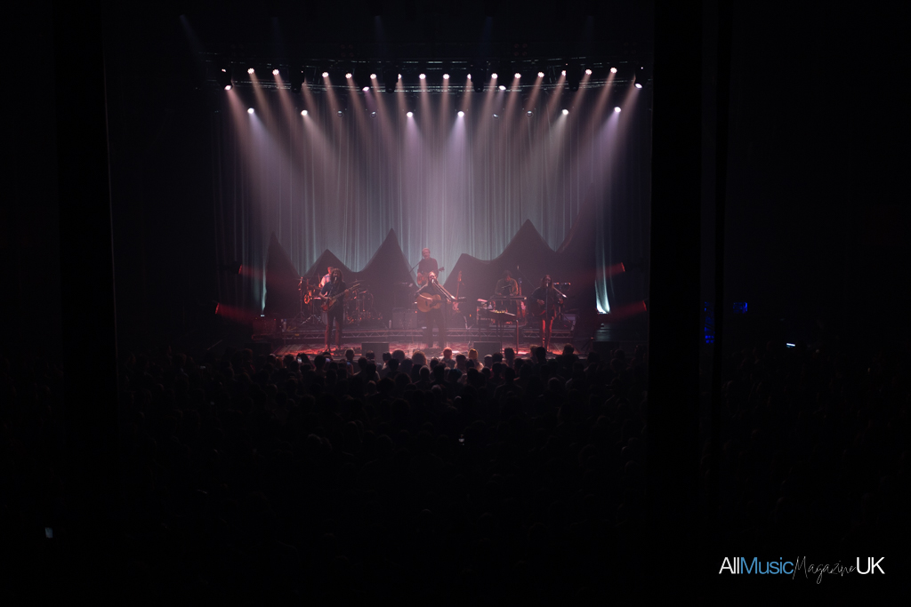 The Paper Kites began gathered centre stage, the entire band crowding round lead singer, Sam Bentley, while bathed in spotlight to open with relatively new track, “Morning Gum”. It was an arresting visual opener, especially for the intimacy of a venue like The Roundhouse which strides that beautiful balance between feeling small and large at once. The sound felt close-knit and stripped back allowing the harmonies to shine. After the opening track finished the lights split to a deep red which silhouetted the band spreading across the stage. These evocative lightscapes continued throughout the performance, complementing the soulful indie-folk well.