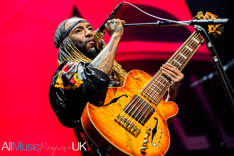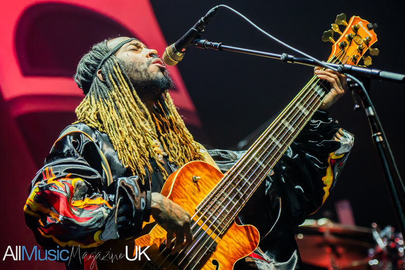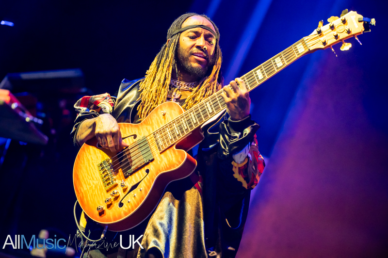 “Black Qualls” lands like a centrepiece early on. The funk in this track feels thicker and heavier than the previous songs. With a bassline that rolls out like a statement of intent, as the crowd respond to the performance. Then in a moment the groove locks so tightly it feels physical, as if the entire room is pulsing along with it. From this point, the playing leans fully into improvisation. “How Sway” dissolves into “Uh Uh” in a blur of rhythmic shifts and playful detours. As noted in recent UK shows, his tendency to “indulge in jams” has the potential to divide opinion, but it also defines the experience, separating the live performance from the original album tracks.