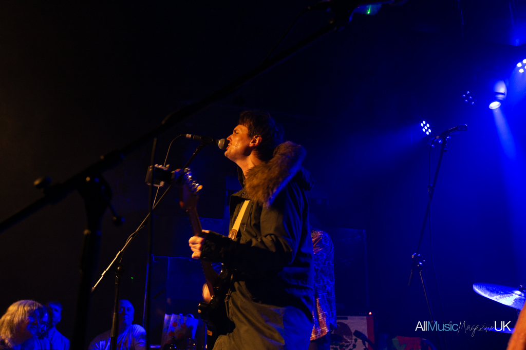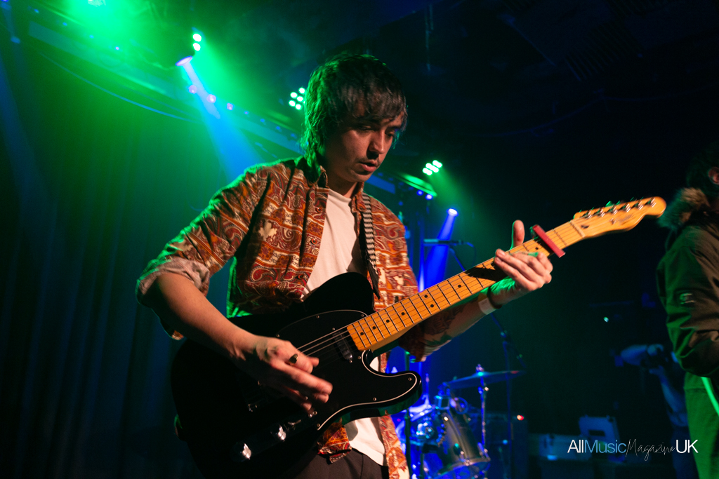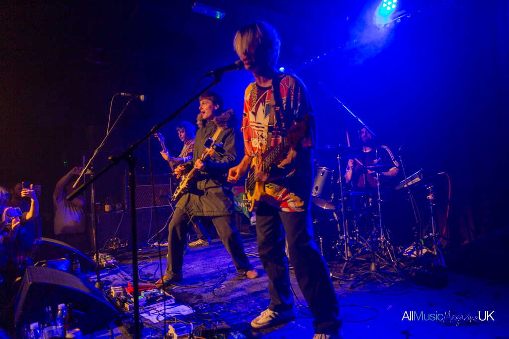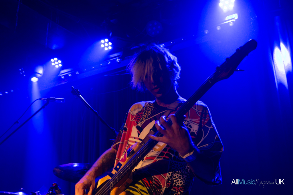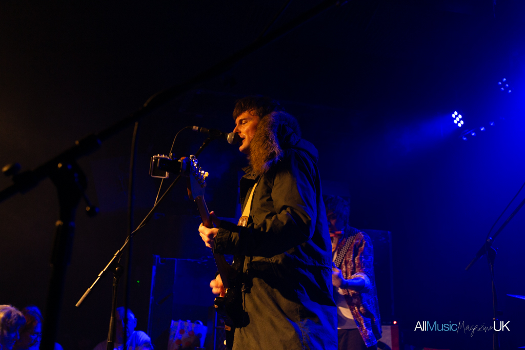 With only a short turnaround between acts, The Lexington really began to pack out. Anticipation filled the air for the long-awaited return of Trampolene. Charismatic lead singer and driving force of the band, Jack Jones, took to the stage clad in a khaki parka and decadent fur hoodie, which he proudly declared mid-set was from “Hinge, no Vinted”. Staunchly refusing to take off the jacket, he threw the fur hood around which became as much a set piece as the mics and guitars. To see Jones in action is to stand to attention. Looking like a cross between a young Tom Welling or James Blunt, and the bone structure of Sophie Ellis Bextor, he arrested the crowd with not just his cheekbones and eyes, but firm insistence that he belongs on stage. The space is his. Clearly energised by the prowess of his own band — his Swansea high school mates — he gave it his all, even diving into the crowd by the show’s end.